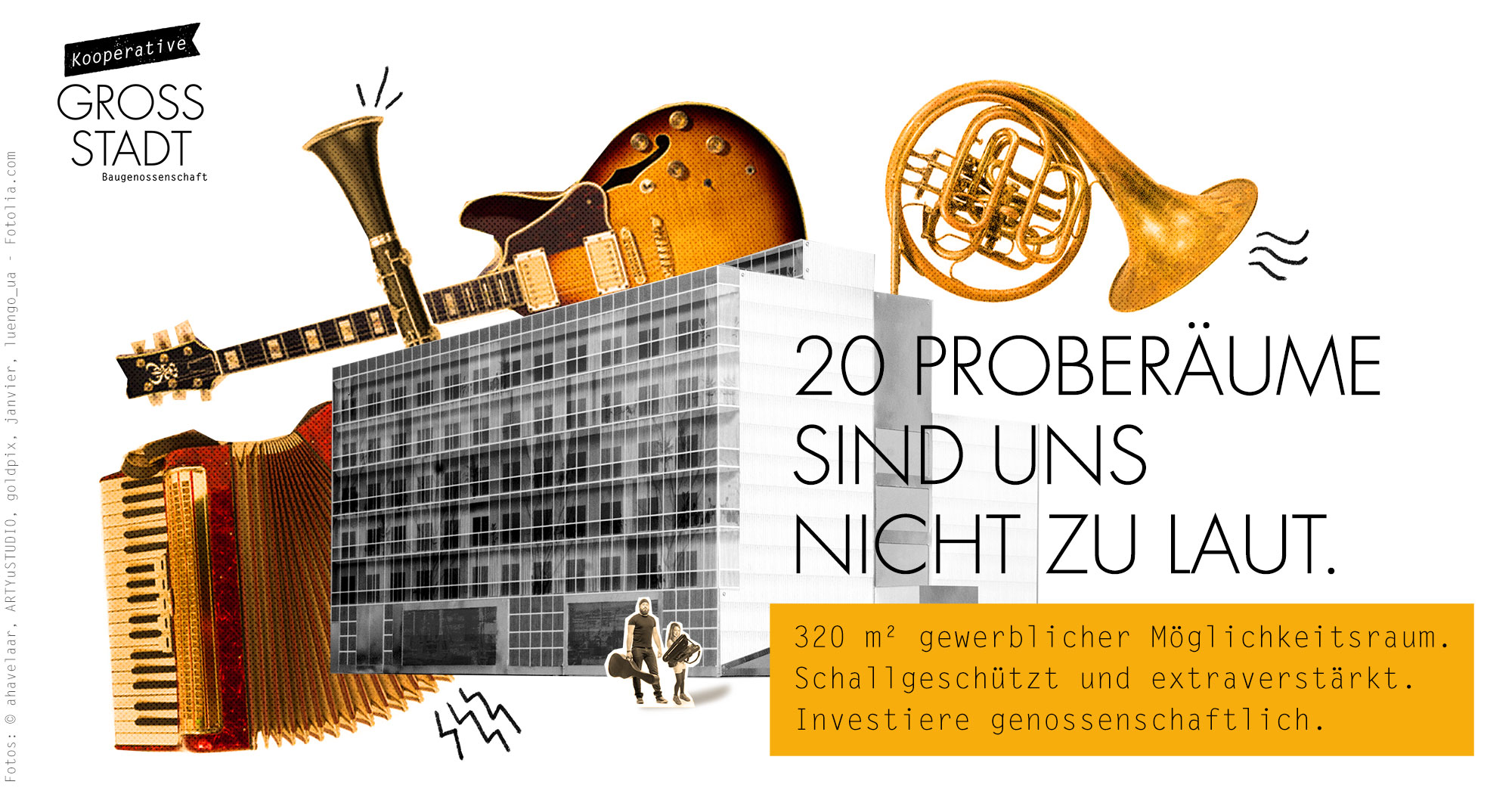Für die Kooperative Grossstadt eG durfte ich das Logo gestalten und sie bei diversen Projekten grafisch begleiten.